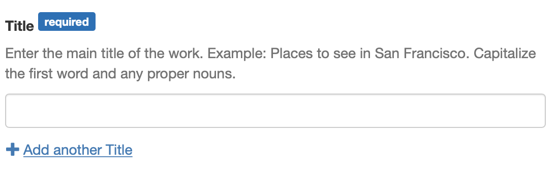 In 2020-2021, the MWG identified the need for additional clarity regarding capitalization practices for the Title field, which formerly advised users to capitalize the first word and any proper nouns, as shown in the screenshot below.