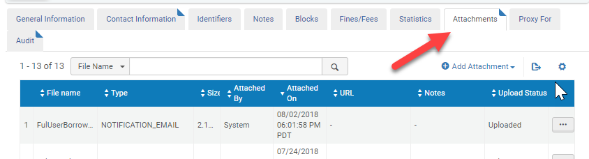 Attachments are usually sorted by date so find the date the item was marked lost and scan through the attachment list to find the appropriate one. If no attachment is there, it is likely the user has not been contacted about the lost item. Work with a local fulfillment or systems person to identify why a letter was not sent and follow up with the patron.