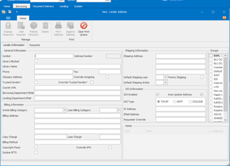 Open ILLiad and go to the Lending Tab and select Address: New. This will open the settings to add the Rapido library partner.